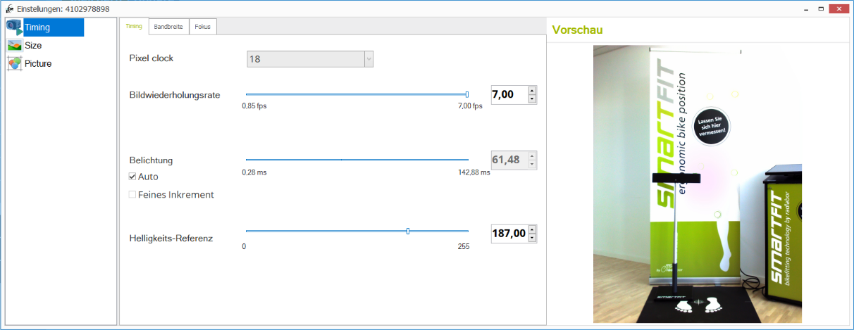 Bildwiederholungsrate: 5-7 Frames sind ausreichend, um Bilder vom Kunden aufzunehmen. Die Bildwiederholungsrate dient lediglich zur Vorschau des Bildes auf ihrem Terminal.