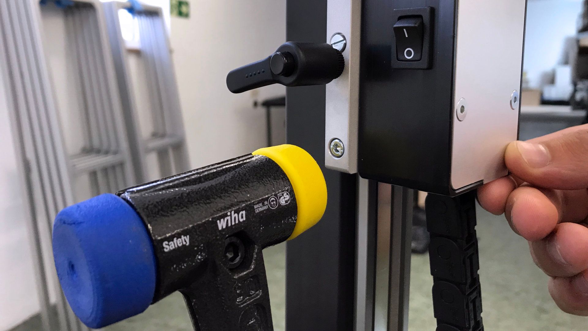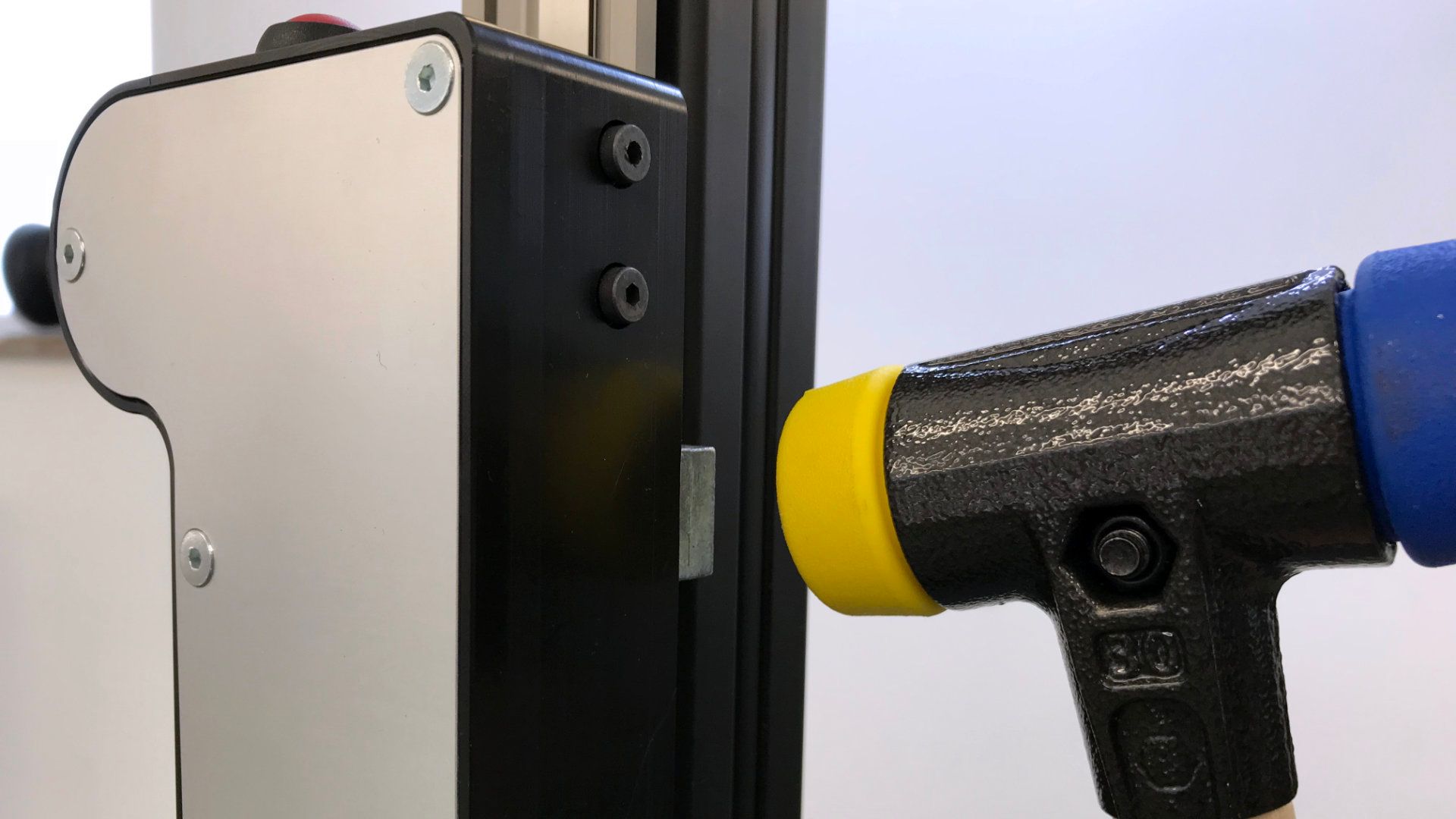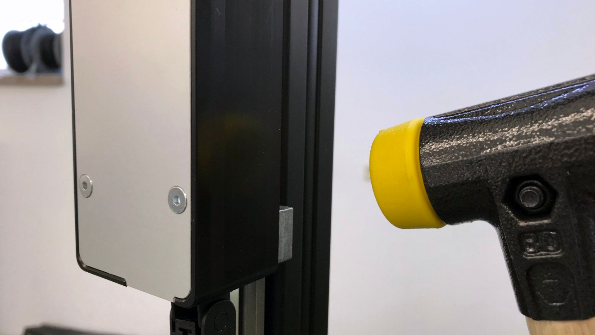 Die Schiene des Messarms arbeitet schmiermittelfrei. Bitte reinigen Sie diese mit einem trockenen Tuch. Sollte die Lasereinheit einmal hakelig auf der Schiene laufen benutzen Sie bitte einen Schonhammer und gehen Sie wie folgt vor: