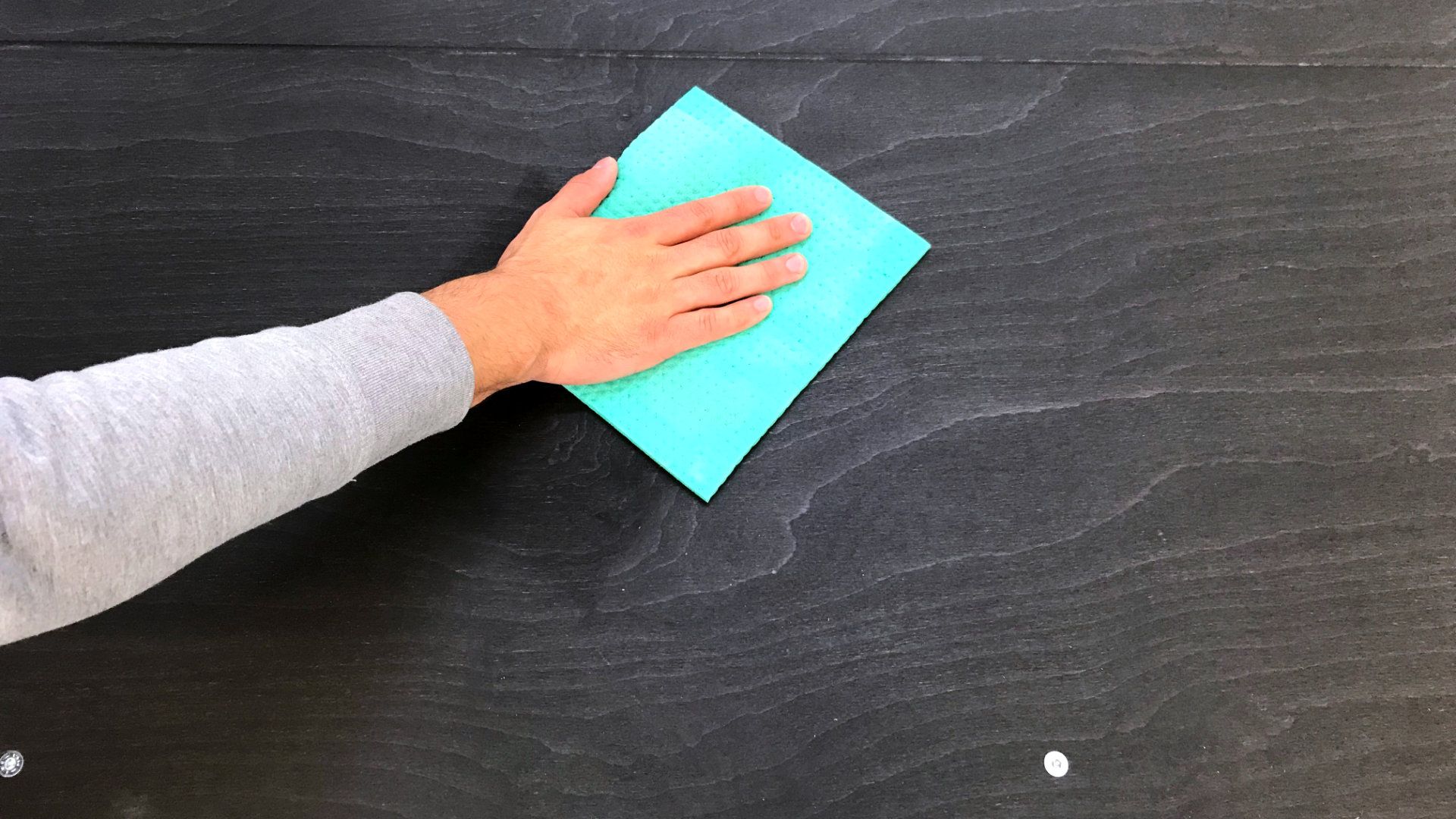 Entfernen Sie zunächst groben Schmutz mit einem Handfeger o.ä. Anschließend reinigen Sie die Holzoberfläche am besten mit einem nebelfeuchten (ganz leicht feuchten) Tuch.