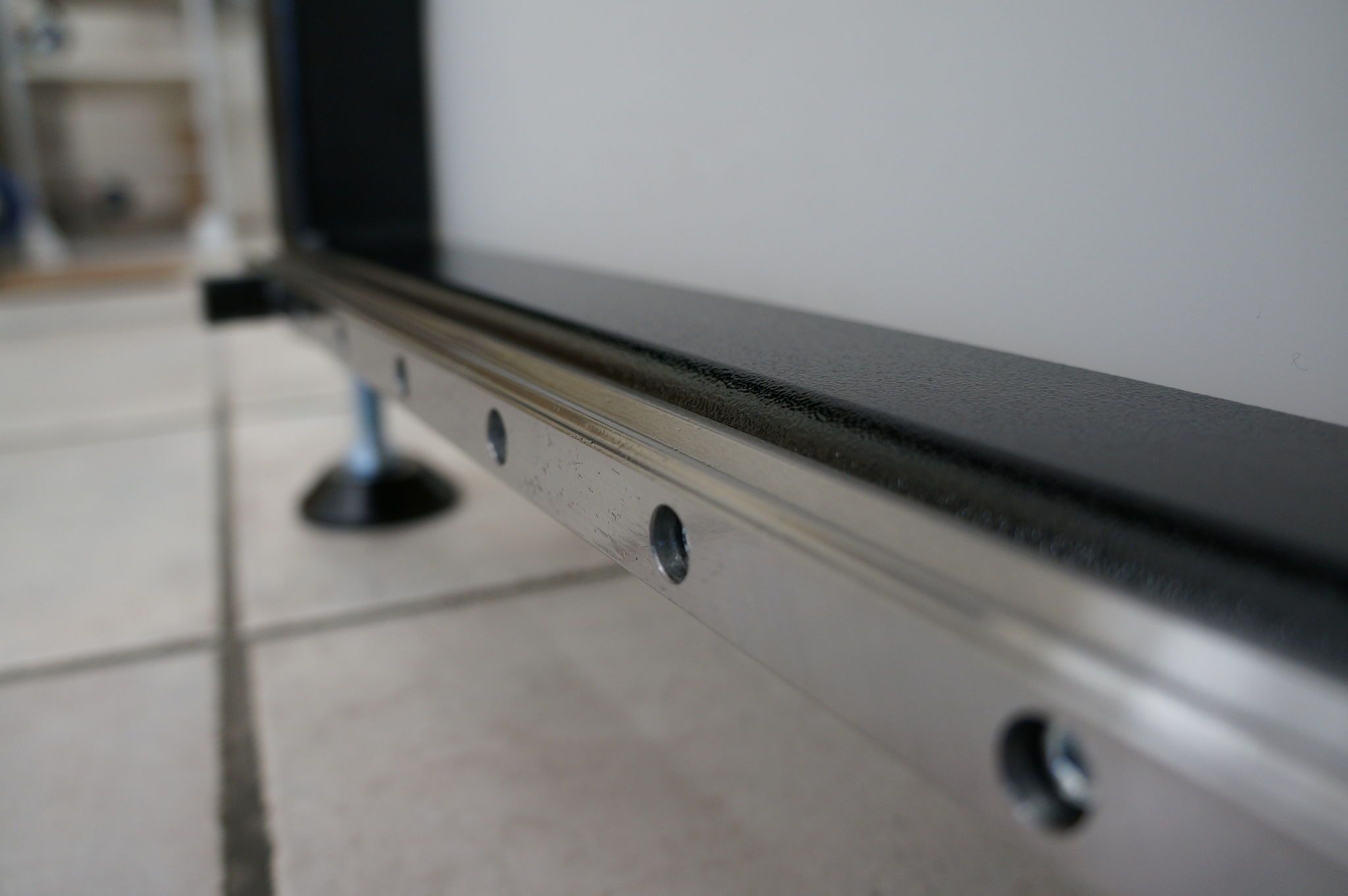 Anschließend klopfen Sie vorsichtig auf die Gleitwägen bzw. auf die darüber montierte Schiene. |