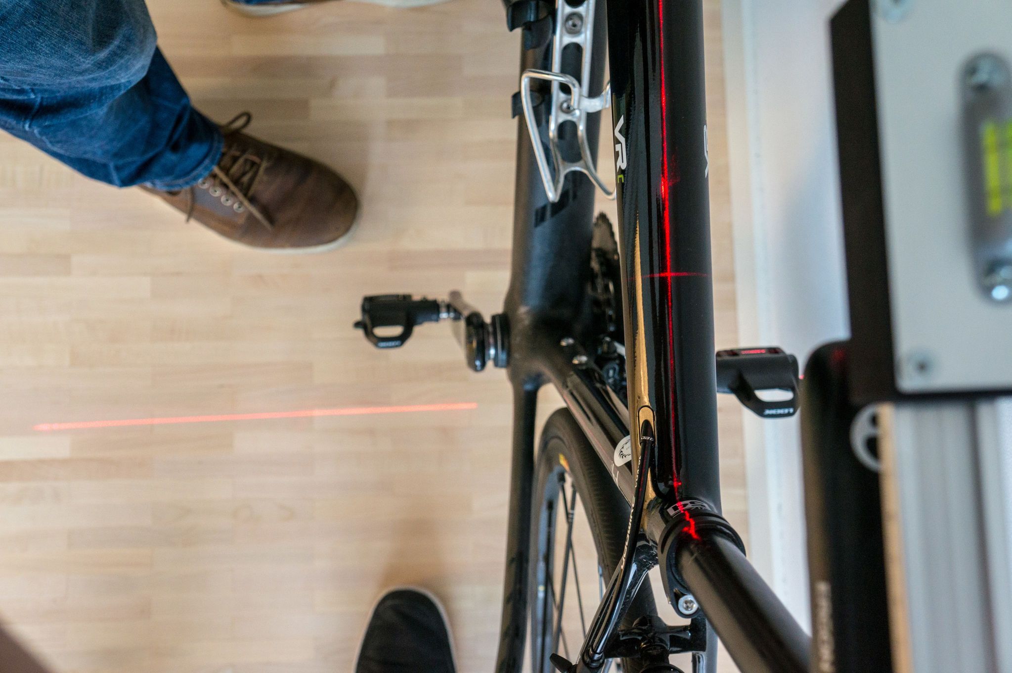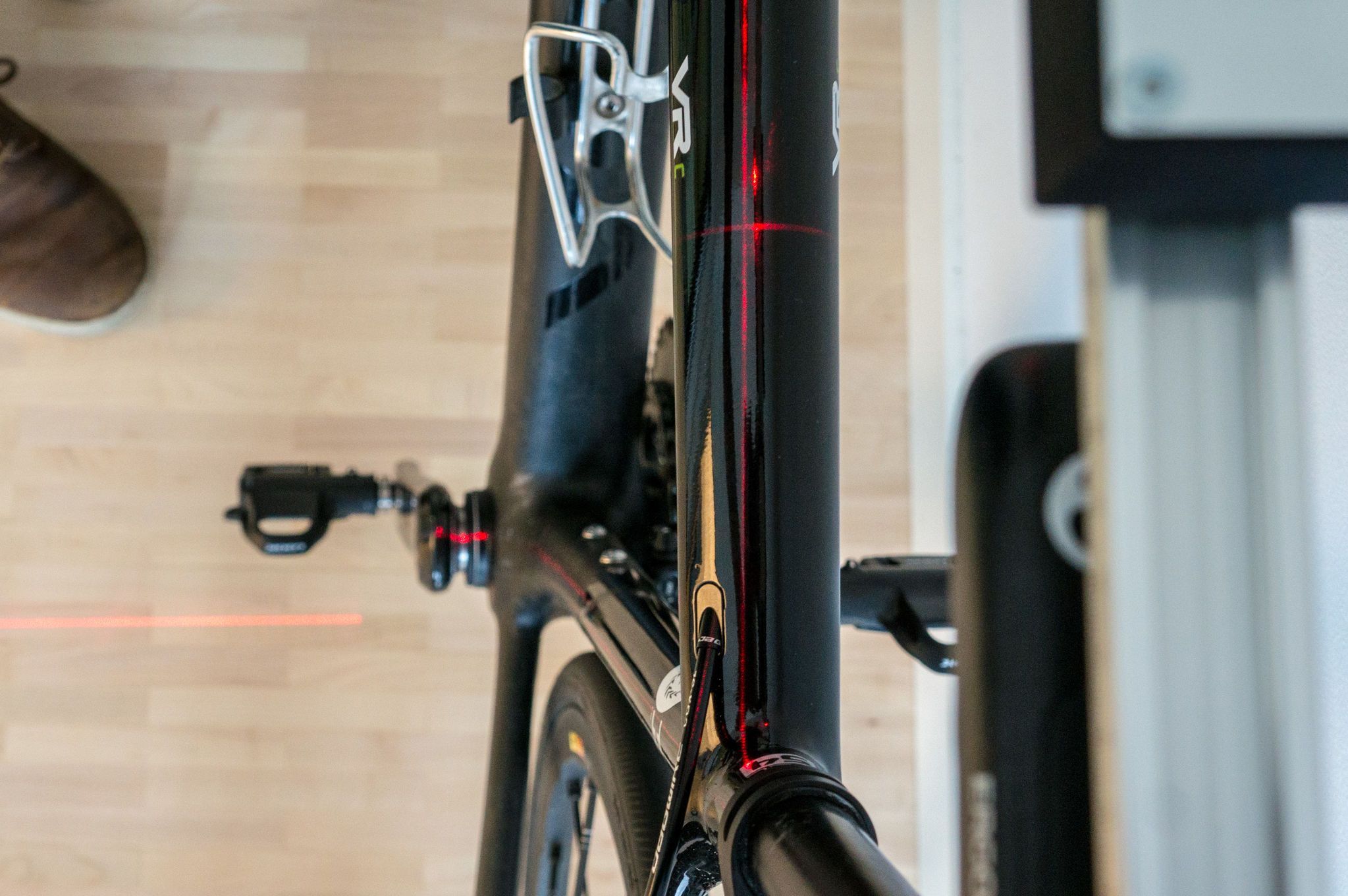 | Im nächsten Schritt überprüfen Sie, ob das Kreuz des Lasers auf Höhe der Tretlagermitte liegt.