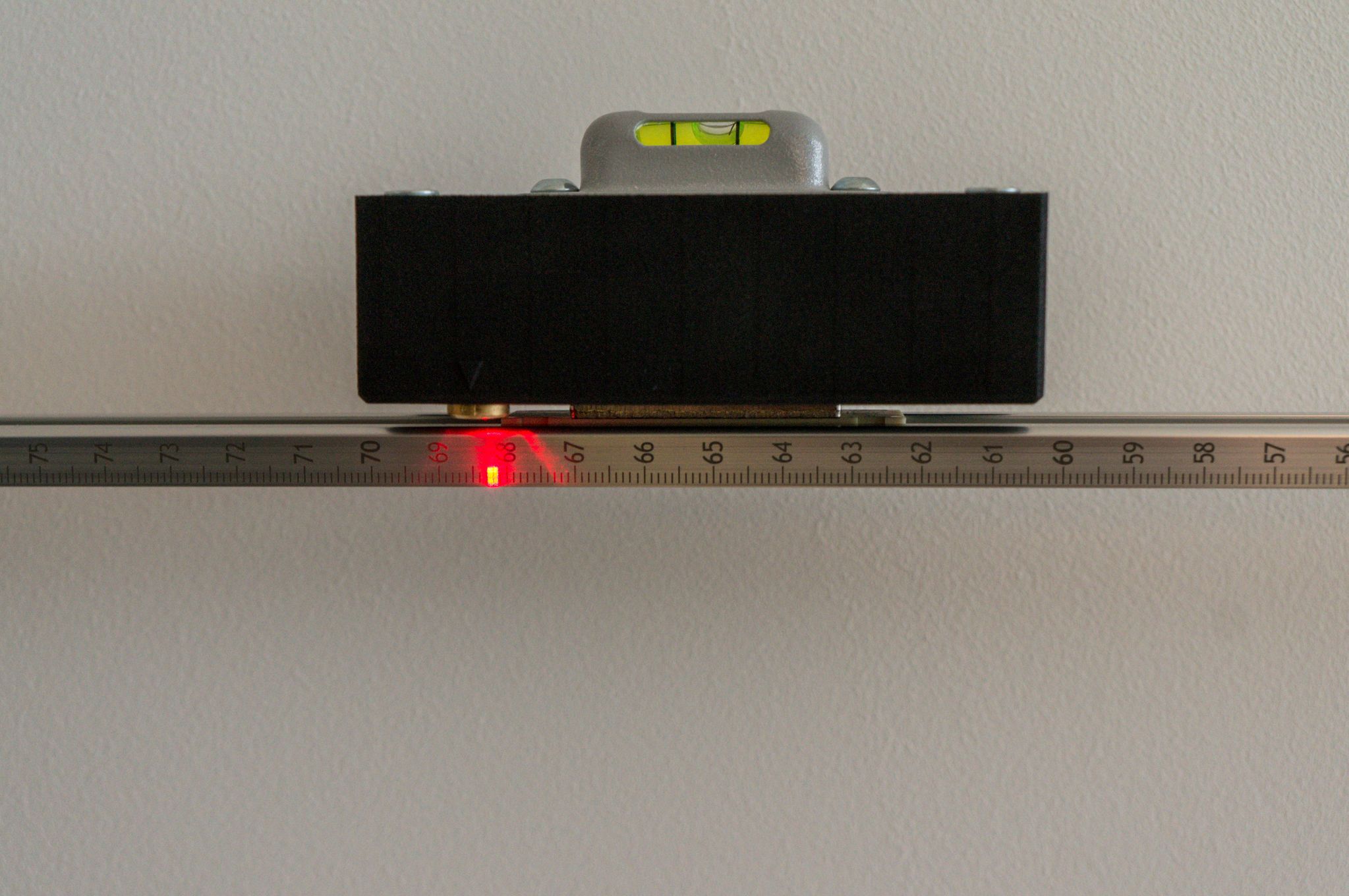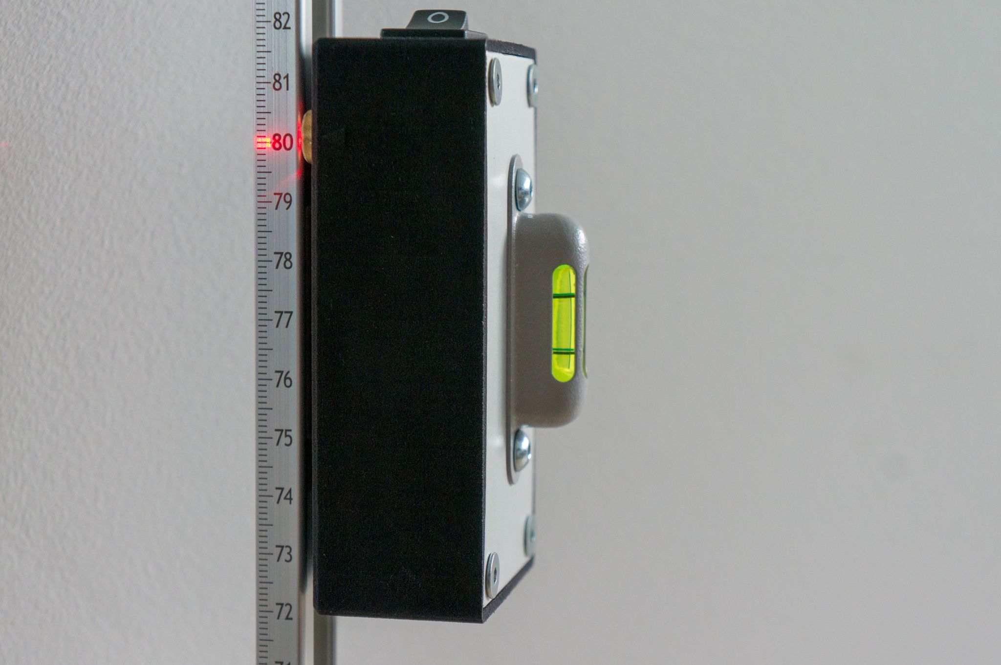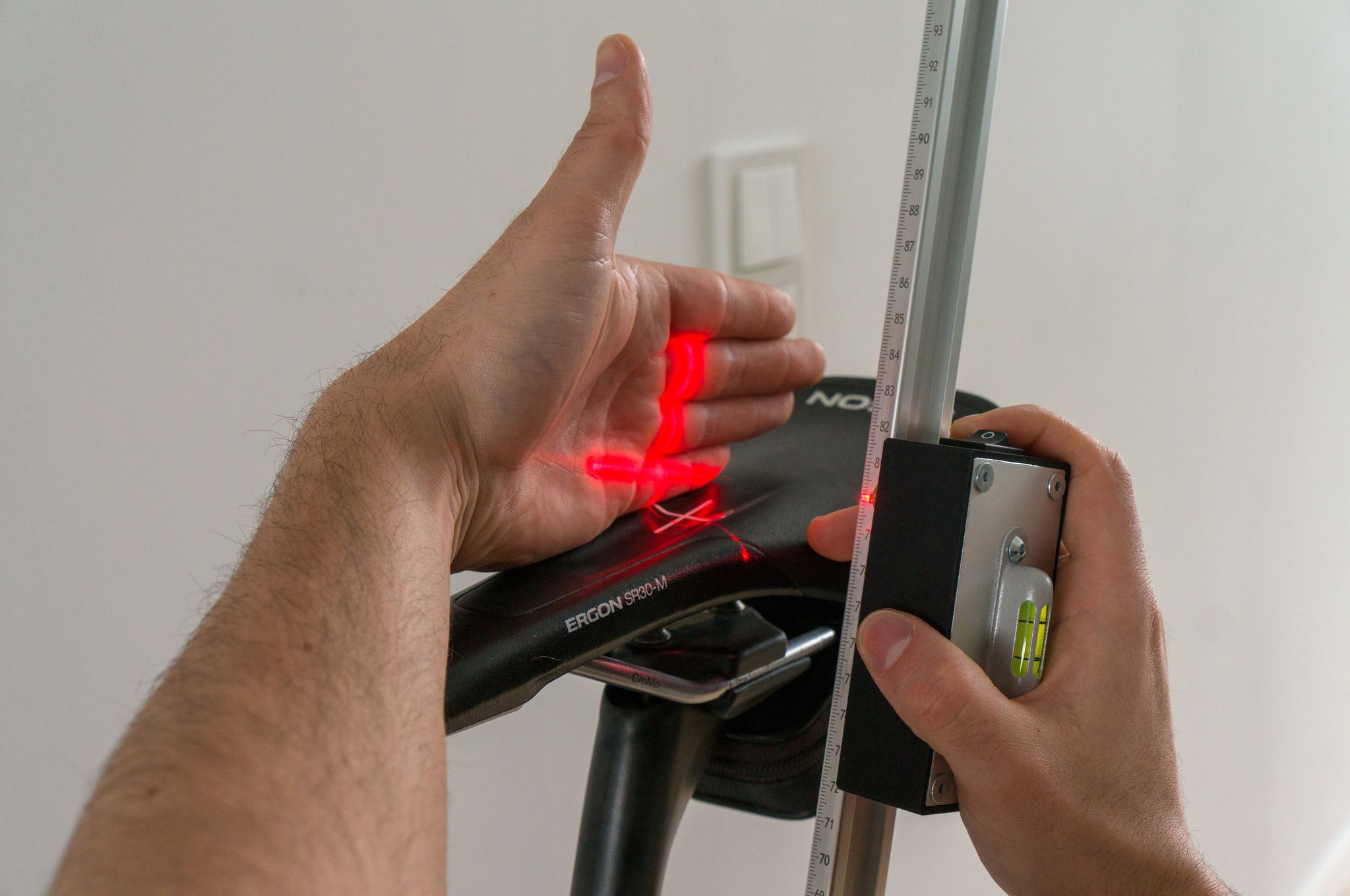 In unserem Beispiel schlägt das Smartfit Q1 eine Sitzhöhe von 80 cm vor. Richten sie den Laser mit Hilfe des verstellbaren Schlittens auf 80cm aus. |
